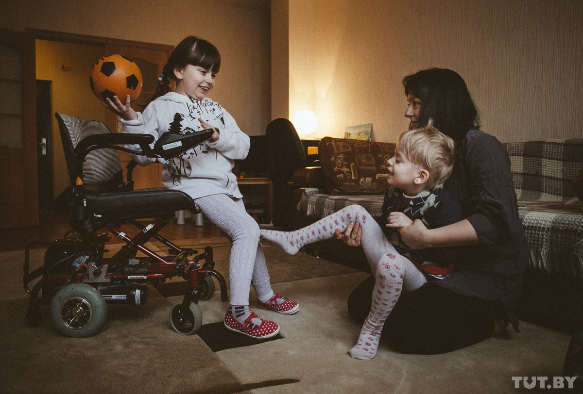— Да, надо сказать, что хоспис под руководством Анны Горчаковой нам крайне помог и облегчил нам жизнь. Такой ребенок — это очень дорого. Яна — это real estate. Все дети, подопечные «Генома», — это недвижимость. Даже если говорить только о расходных материалах — их масса. Пособия не хватает. Но в определенный период, связанный со строительством и экономией денег, наших детей (а к тому моменту Анна уже знала с десяток семей, столкнувшихся с таким же сложным вопросом. — Прим. автора) как стабильно тяжелых отчислили из числа подопечных. У нас уже тогда была проблема по деньгам, у супруга было не очень по работе. И я искала любые способы, чтобы Яне улучшить состояние. Деньги уходили в очень больших объемах. Тогда же, в 2013 году, мне и Анна Горчакова, и председатель ОО «Белорусская ассоциация помощи детям-инвалидам и молодым инвалидам» Елена Титова посоветовали создать объединение и начать если не лоббировать интересы таких же детей и семей, то хотя бы оказывать поддержу. Поездила по родителям, пособирала подписи, создали объединение. Сначала с мужем в него вкладывались, потом деньги закончились и начали выкручиваться.