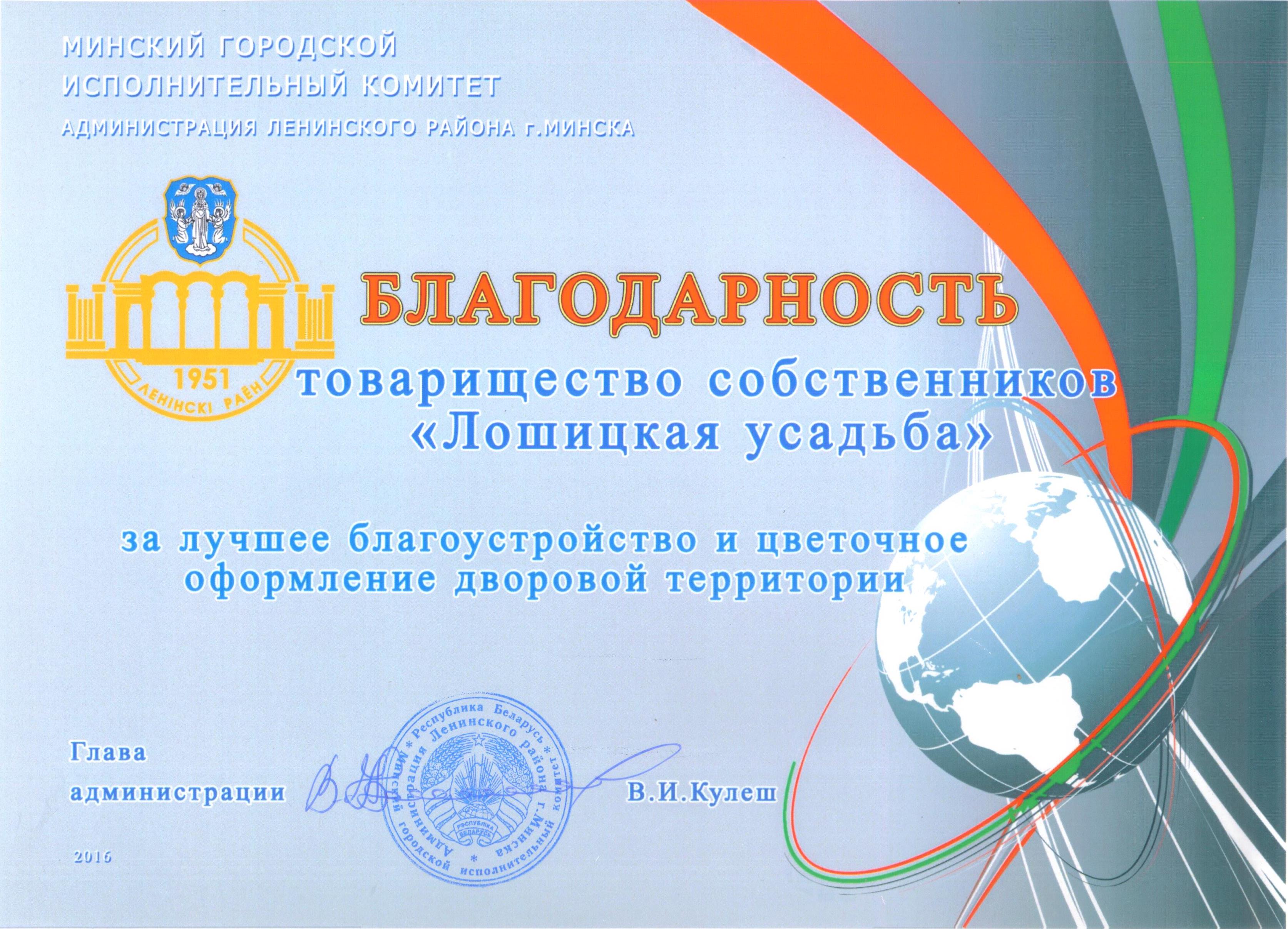 у нас кстати есть квартиры с буквами в номере, не вводятся такие как я понял в анкету ... Огромное спасибо всем неравнодушным к дворовой территории  18.02.2016 состоялось награждение лучших организаций, принявших участие в облагораживании и качественном содержании и озеленении Ленинского района за 2015 год. Товарищество "Лошицая усадьба" ... исправления на сайте