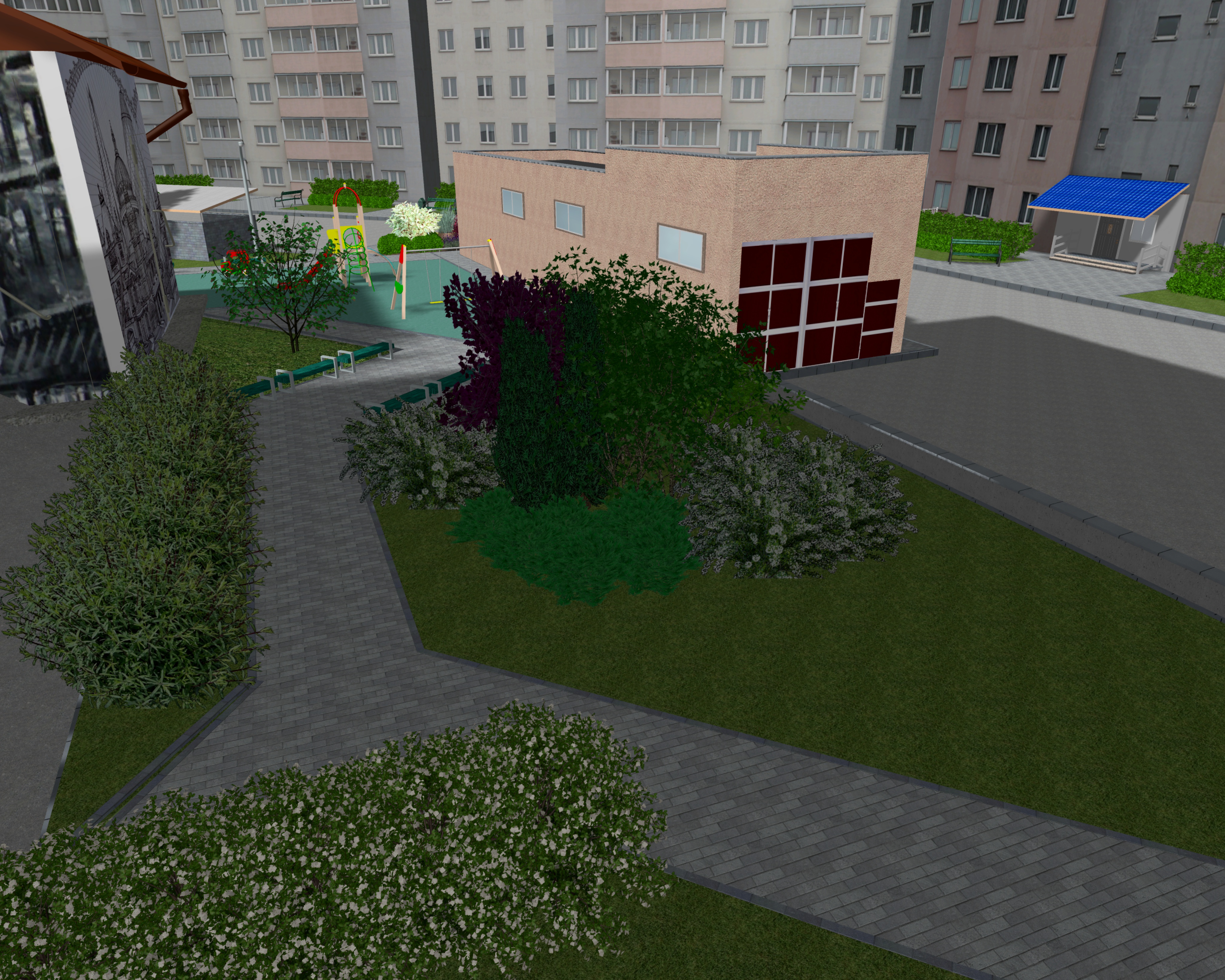 больше кустов / деревьев/ цветов ( создать ветрозащиту, солнцезащиту с помощью кустов) - > приглашаю к обсуждению вариантов преобразования дворовой территории - > Двор, Парковка - > Типовые Вопросы 4 Изначально Ольгой предлагалось именно озеленение.
